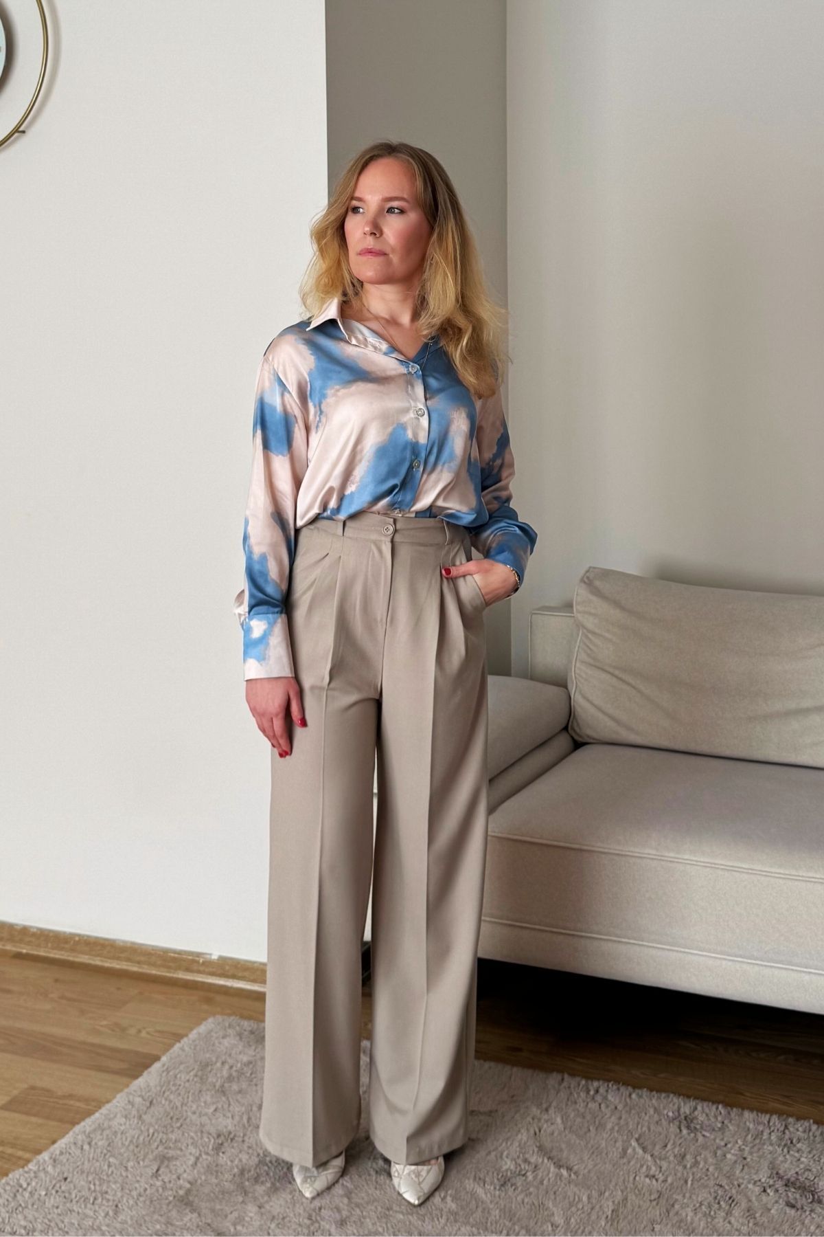 – Her yaş grubuna hitap eden, zamansız tasarımıyla tüm sezonlar boyunca tercih edebileceğiniz bir palazzo pantolon.; – Ayarlanabilir bel yapısı sayesinde farklı vücut tiplerine kolayca uyum sağlar ve konforlu bir kullanım sunar.; – İki adet cep detayı ile pratik eşyalarınızı yanınızda taşımanız için idealdir.; – Standart yıkama talimatlarına uygun şekilde bakım yapıldığında uzun ömürlü kullanım vaat eder.; – Kemer veya kuşak gerektirmeyen tasarımı ile minimalist ve şık bir görünüm elde edilir.; – Pileli detayları sayesinde modern ve dinamik bir siluet oluştururken aynı zamanda rahat hareket etme imkanı tanır.; – Astarsız yapısı ile hafif ve nefes alabilen bir yapıya sahiptir; böylece gün boyu rahatlık hissi yaşatır.; – Smart/office koleksiyonunun parçası olarak ofis ortamında şıklığınızı korumanız için idealdir.; – İnce yapısıyla mevsim geçişlerinde ideal konforu sunarken, basic siluetiyle her tür üst giysiyle kombinlenebilirlik sağlar.; – Regular boy kesimi sayesinde farklı vücut tiplerine uyum gösterirken şık duruşunu korur.; – Dokuma kumaş tipi dayanıklılığı arttırarak kaliteli bir kullanım deneyimi sunar.; – Yetişkinlere yönelik tasarlanmış bu pantolon, günlük giyimden iş hayatına kadar geniş bir yelpazede tercih edilebilirlik gösterir.; – Yüksek bel kesimi ile modern ve zarif bir görünüm kazandırırken aynı zamanda vücut hatlarını nazikçe sararak estetik bir siluet oluşturur.; – Düz deseniyle sadelikten yana olanların tercihi olup her tür aksesuarla kolayca uyum sağlar.; – Bol paça tasarımının sunduğu rahatlıkla gün içindeki hareket özgürlüğünüz arttırılırken stilinizden ödün vermezsiniz.; – Kumaş materyali sayesinde dayanıklılığı arttırarak uzun süreli kullanım vaat ederken aynı zamanda konforlu hissiyatını korur.